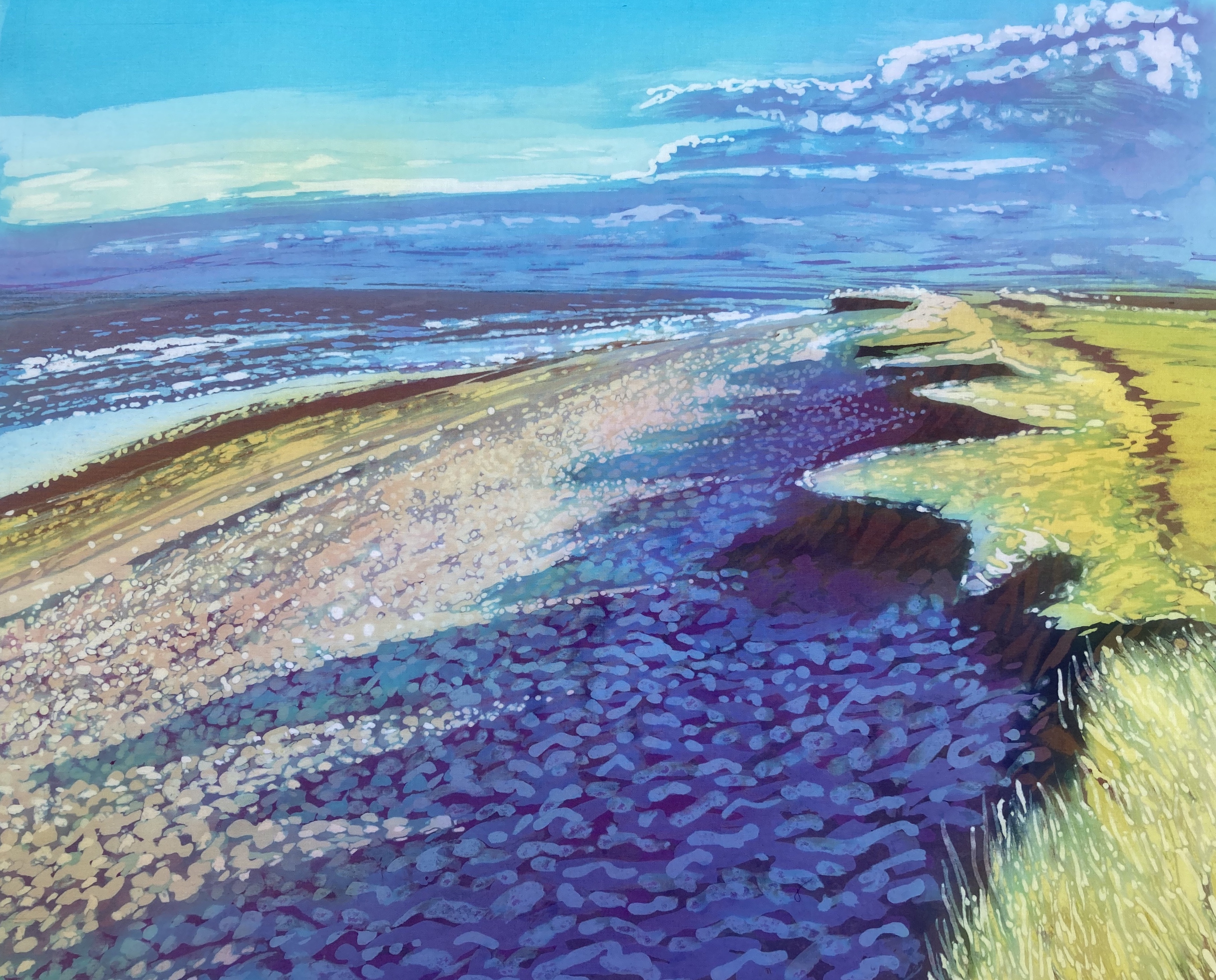 ‘Monolith’ Easington Beach – batik on cotton (90 x 70 cm)